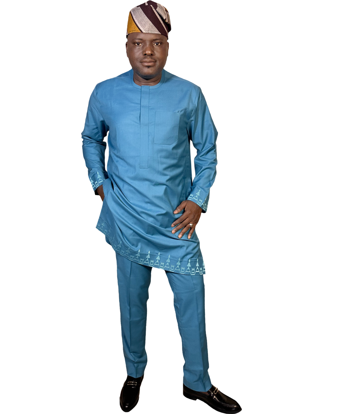 TAYO Men’s African Senator Wear – Teal Blue Classic Traditional Outfit | MP Collections